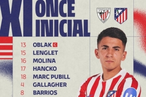 马竞客战毕巴首发:阿尔瓦雷斯、加拉格尔出战